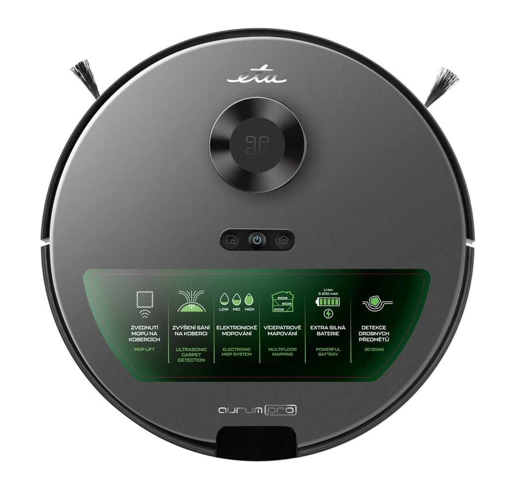 Automatyczny odkurzacz ETA Aurum PRO "mówi" w Twoim języku. Oprócz czeskiego, możesz ustawić język na angielski, polski, niemiecki, francuski itp. Ponadto jest kompatybilny z Amazon Alexa i Google Assistant, więc możesz mu również przekazywać polecenia głosowe.