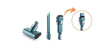 Dysza szczelinowa i główna głowica wyposażone w diody LED oświetlają ukryte drobiny w ciemnych zakamarkach.