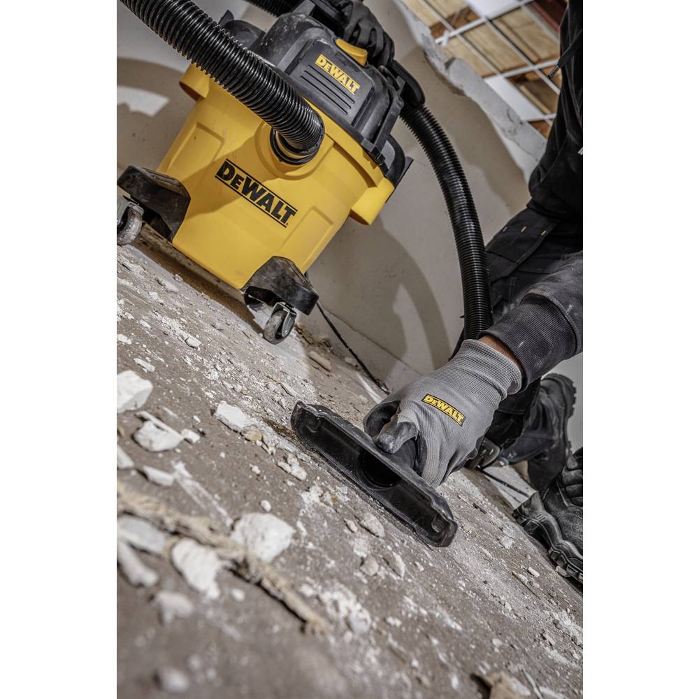 Gdzie jest struganie, tam są wióry. Odkurzacz do pracy na mokro i sucho DEWALT wyłapuje pyły za pomocą lejka, który można podłączyć do węży ssących o średnicy 32, 48 lub 64 mm, w zależności od wielkości odkurzanych elementów. Uszczelka gumowa chroni przed uszkodzeniami. Szczególnie praktyczne: lejek przylega do ściany dzięki sile ssącej odkurzacza, dzięki czemu można go używać bez użycia rąk.