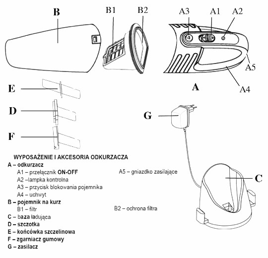 Zasilany z wbudowanego akumulatora znakomicie sprawdza się przy sprzątaniu mieszkania i samochodu. Łatwy w czyszczeniu zmywalny filtr stały eliminuje uciążliwe czyszczenie worka z kurzem. Małe wymiary i waga odkurzacza oraz ładowanie z sieci 230V ( ładowarka w komplecie ) ułatwiają sprzątanie. Trudno nie zwrócić uwagi na wyjątkowy design urządzenia.