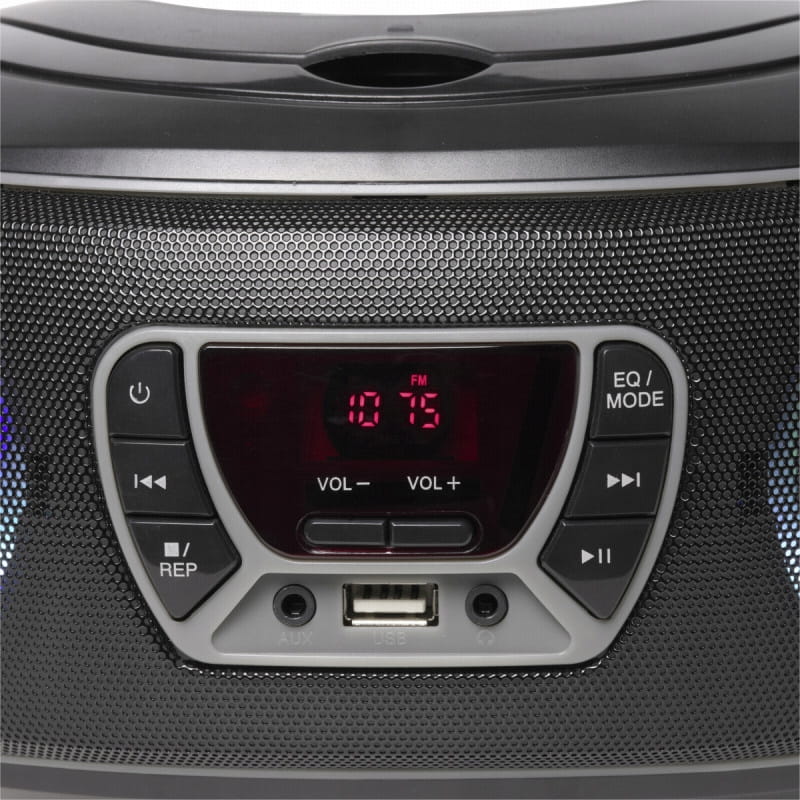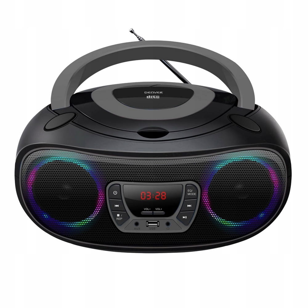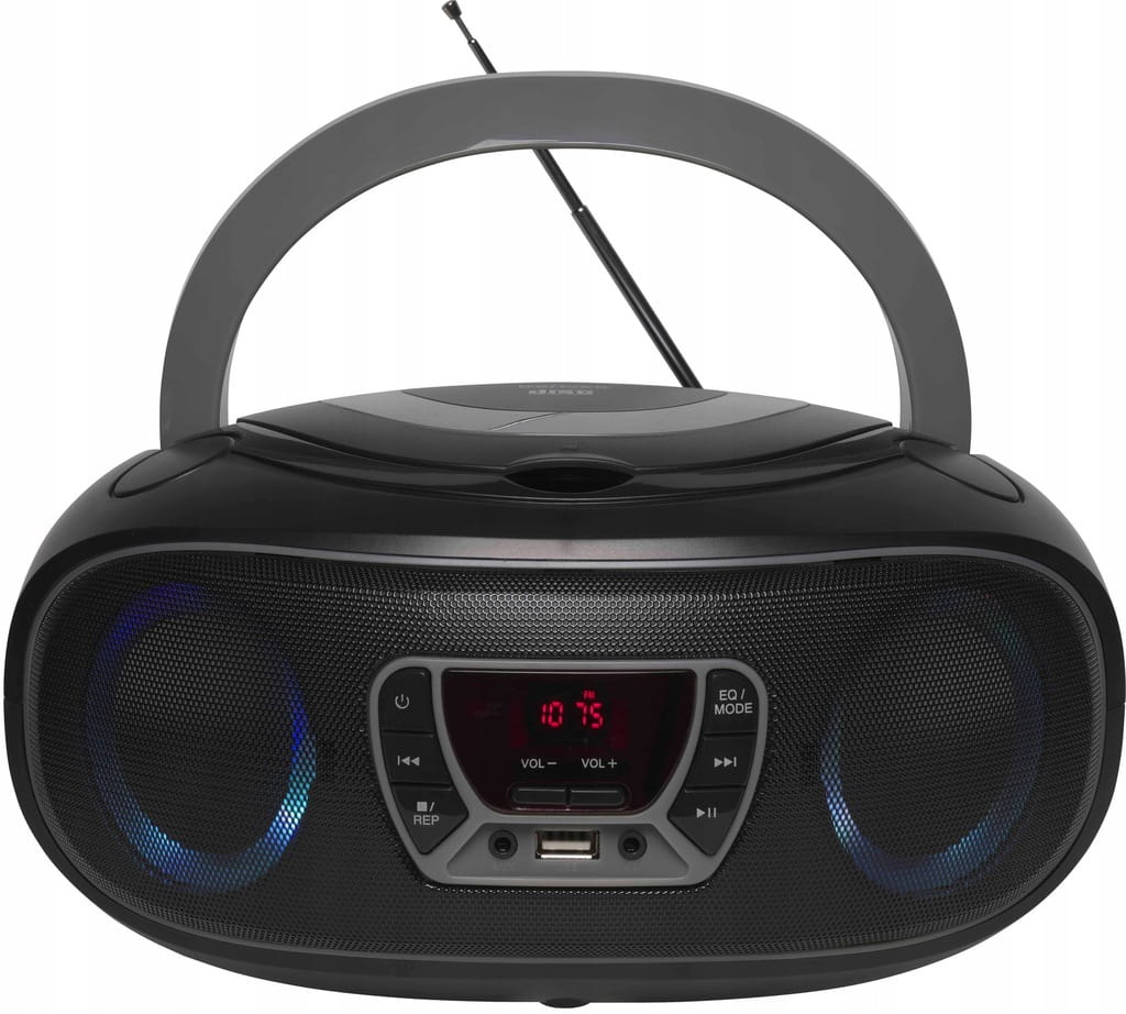 Boombox z odtwarzaczem CD, który umożliwia słuchanie muzyki z różnych źródeł. Możesz odtwarzać płyty CD, pliki MP3 z urządzenia USB, a nawet odbierać transmisje radiowe FM.
