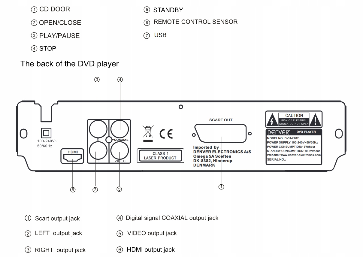 - Złącza: HDMI, Scart, koncentryczne, wideo i L/R Audio, COAXIAL, USB