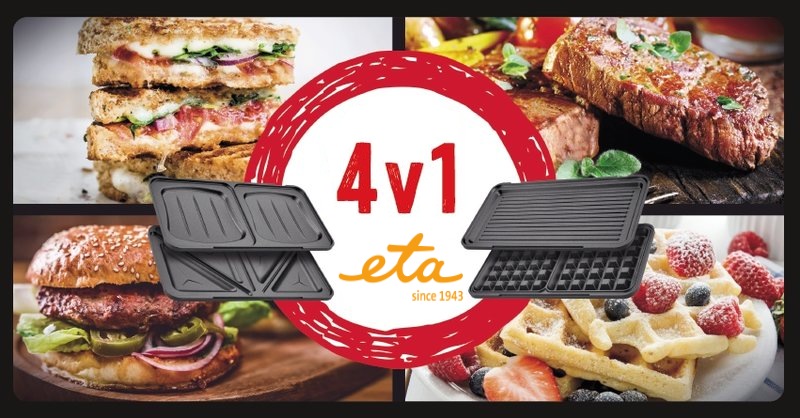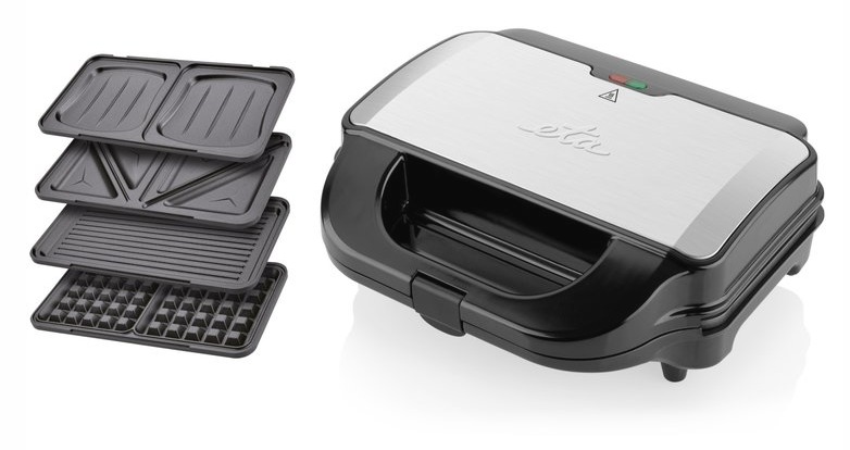 Elegancki elektryczny opiekacz ETA Sorento jest bogato wyposażony w 4 pary wymiennych płytek z powierzchnią nieprzywierającą, która zapobiega przypaleniu się żywności do powierzchni. Jednocześnie jest bardzo łatwy do czyszczenia. Można wybierać pomiędzy klasycznymi trójkątami, kwadratami, muszelkowymi kanapkami, powierzchnią grillującą lub płytami do wafli. Twoje opiekanie i grillowanie może mieć nie tylko niezliczone smaki, ale także formy.