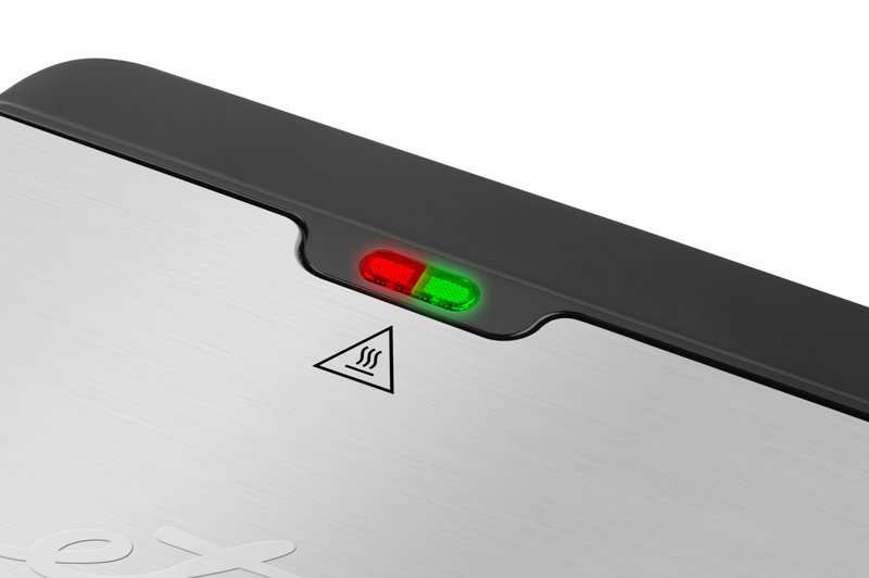 Na jego nowoczesny design było potrzebne połączenie trwałej i wysokiej jakości tworzywa sztucznego, wraz z elementami ze stali nierdzewnej, które spełnia nie tylko funkcje estetyczne, ale także bezpieczeństwa. Wbudowany również jest ochronny bezpiecznik termiczny, który zapewnia bezpieczną pracę opiekacza. Temperatura jest regulowana automatycznie, co znacznie ułatwi przygotowanie kanapek. Proces opiekania sygnalizuje wskaźnik świetlny. Czerwone światło oznacza, że opiekacz pracuje, zielona dioda wskazuje prawidłową temperaturę.
