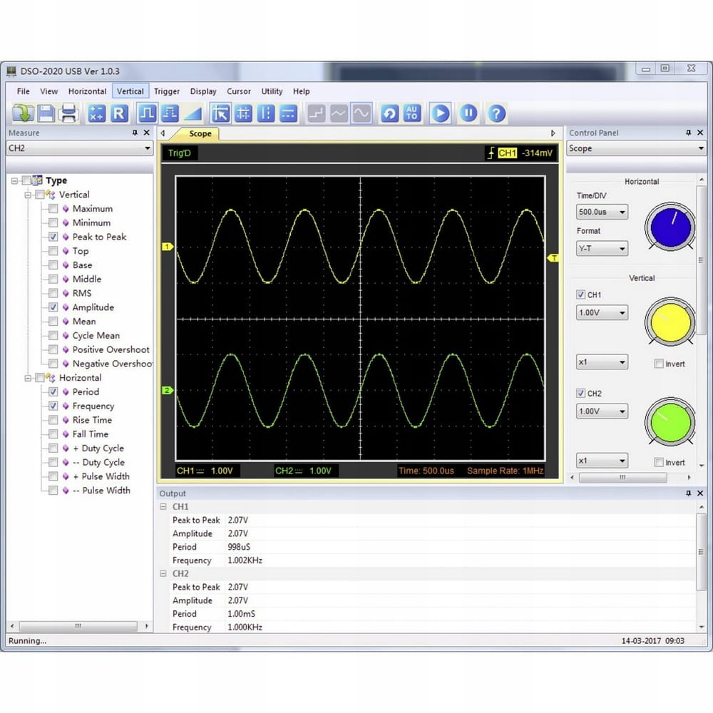 Oscyloskop komputerowy 2 kanałowy 48 MSa/s 1 Mpts 8 Bit