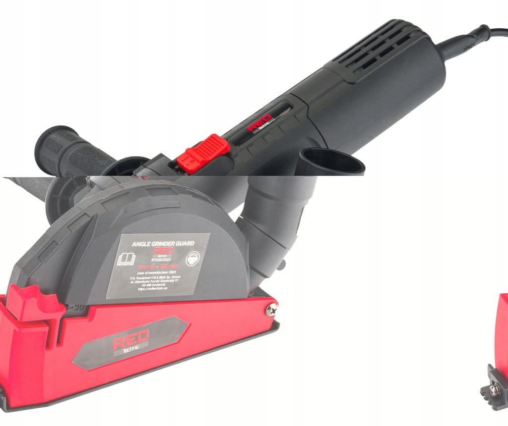 Kompaktowa osłona zabezpieczająco - odpylająca marki RED TECHNIC zaprojektowana specjalnie do użytku ze szlifierkami kątowymi różnych firm. Dzięki uniwersalnemu adapterowi współpracuje z każdym odkurzaczem. Odpowiedni do dysków o średnicy 100 - 125 mm.