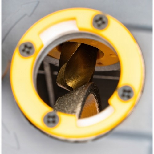 - Gniazdo (otwór szlifierski górny) z wyznaczonym momentem obrotowym dla głowicy w celu precyzyjnego wyrównywania dłuta wiertła po obu stronach.