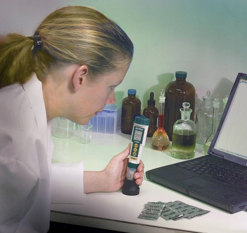 Wytrzymały i wodoszczelny (IP57) miernik do pH. Dzięki płaskiej, wymiennej elektrodzie pomiarowej pomiar możliwy jest nawet przy niskich poziomach cieczy oraz na powierzchni.