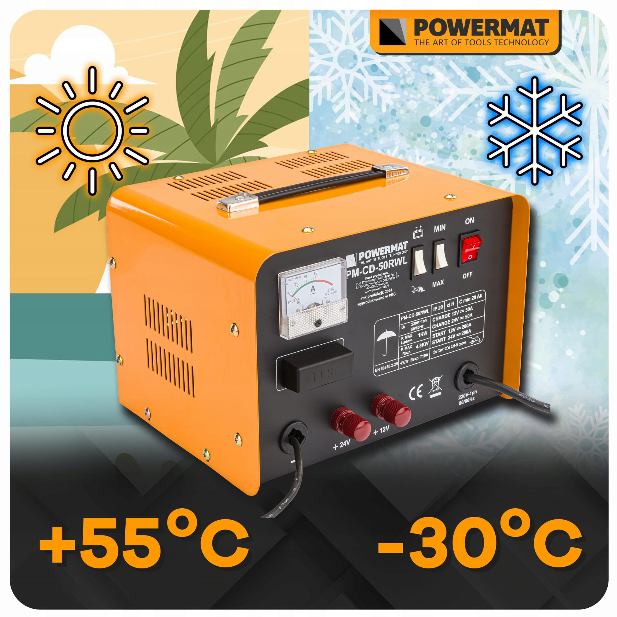 Prostownik akumulatorowy Powermat to niezawodne urządzenie, które szybko naładuje rozładowany akumulator i dzięki funkcji rozruchu 200A pozwoli bez problemu uruchomić nawet większe silniki, zarówno benzynowe, jak i diesla. Dzięki swojej konstrukcji i wysokiej jakości wykonania jest odporny na uszkodzenia i posłuży przez wiele lat.