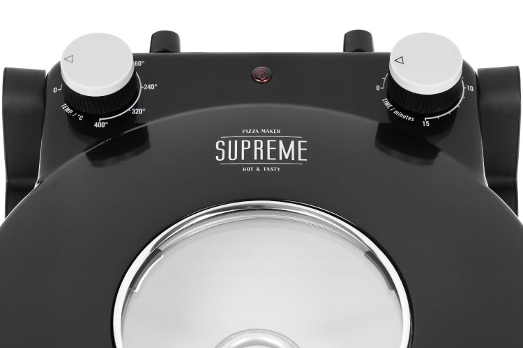 Czarna obudowa domowego pieca do pizzy Teesa Supreme, nadaje mu uniwersalności, która sprawdzi się w każdej kuchni. Zamieszczone na pokrywie nienagrzewające się uchwyty umożliwiają bezpieczne otwarcie pieca w każdym momencie pieczenia. Z kolei dzięki dwóm dołączonym do zestawu stalowym łopatkom Twoja pizza domowej roboty szybko i pewnie wyląduje na talerzu domowników.