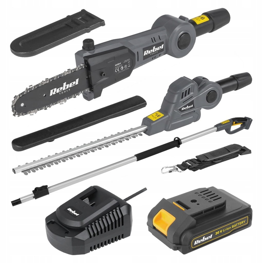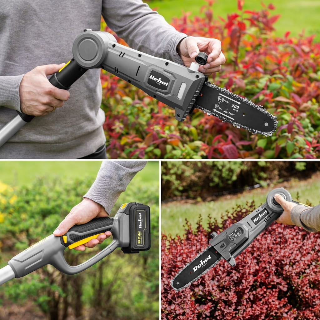 - Mocny silnik piły i nożyc gwarantuje szybkie i efektywne przycinanie nawet gęstych i twardych krzewów.