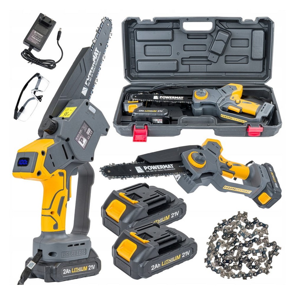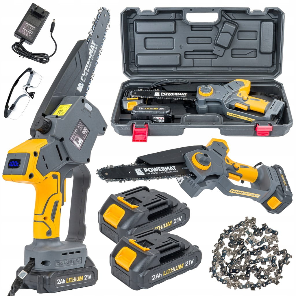 Łańcuchowa piła akumulatorowa POWERMAT to wszechstronne narzędzie idealne do cięcia gałęzi, drewna opałowego i pielęgnacji drzew. Wyposażona w dwa akumulatory, ergonomiczny uchwyt i liczne zabezpieczenia, zapewnia komfort, bezpieczeństwo i ciągłość pracy. Lekka konstrukcja i walizka ułatwia transport i przechowywanie.