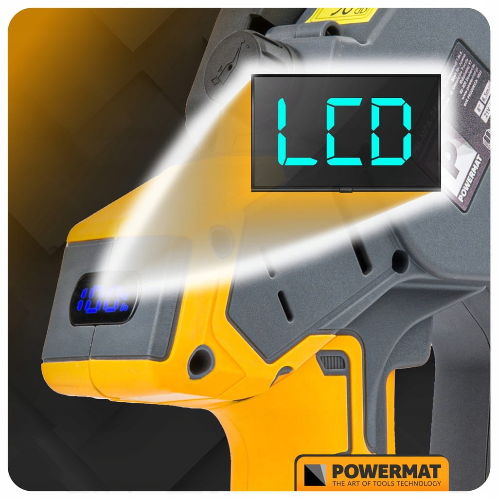 Innowacyjny wyświetlacz LCD w górnej części piły łańcuchowej pokazuje poziom naładowania akumulatora w czasie rzeczywistym, zapewniając pełną kontrolę nad pracą. To jedyne takie rozwiązanie na rynku, które łączy wygodę, precyzję i nowoczesną technologię!
