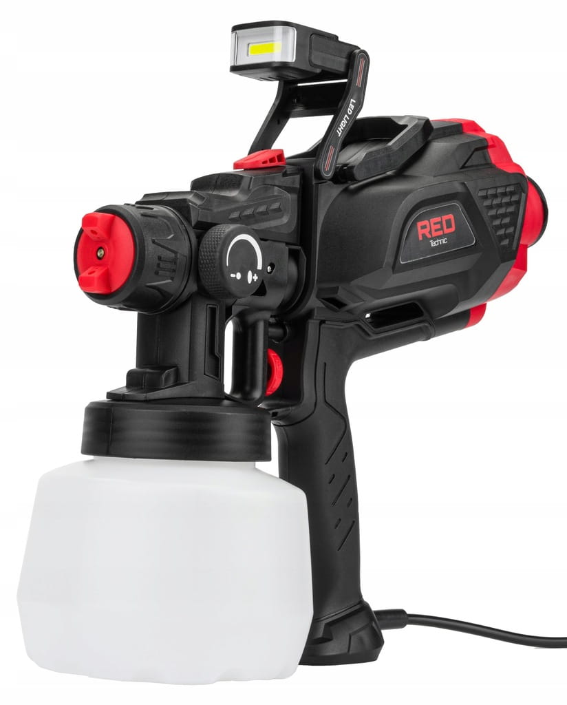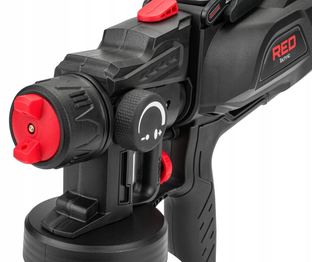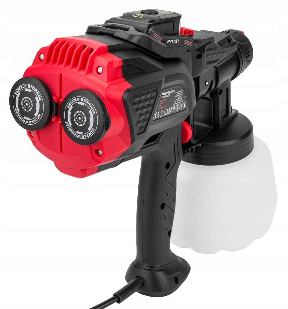Pistolet malarski możemy w prosty sposób rozłożyć na dwie części brudną i czystą z silnikiem. Dzięki takiemu rozwiązaniu mamy możliwość łatwiejszego i szybszego umycia elementów pod bieżącą wodą lub przez zanurzenie w wodzie.