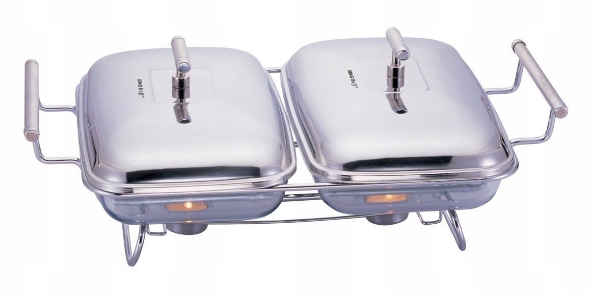 Ekskluzywny podwójny podgrzewacz szklany do potraw z pokrywami ze stali nierdzewnej. Misy z grubego szkła żaroodpornego umożliwiają przyrządzanie gorących jak i schłodzonych potraw. Obszerne misy szklane umieszczone w stalowej podstawie z praktycznymi uchwytami. Podstawa wyposażona w gniazda na świeczki, które podgrzewają podane w naczyniu żaroodpornym potrawy. Szkło hartowane Sabinex wyprodukowane we Francji. Oryginalny i wyszukany design naczynia urozmaici każde przyjęcie w gronie rodziny czy znajomych.