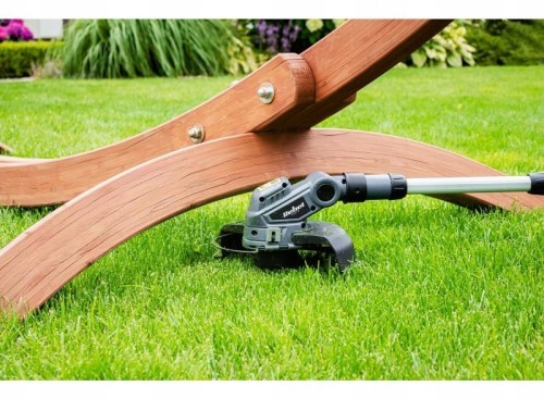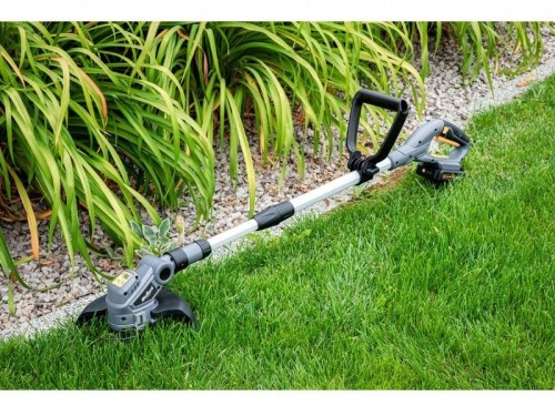 Podkaszarka nie tylko umożliwia dostosowanie obrotu i kąta nachylania zarówno uchwytu przedniego, jak też kąta nachylenia głowicy, ale także pozwala na regulację długości ramienia teleskopowego. Zapewnia to zarówno skuteczność koszenia, jak też komfort podczas pracy. Dużą zaletą urządzenia jest także bezprzewodowe działanie, dzięki czemu możesz zapomnieć o przedłużaczach i plączącym się kablu. Dodatkowo podkaszarka została wyposażona we wskaźnik naładowania akumulatora, abyś mógł kontrolować czas swojej pracy.