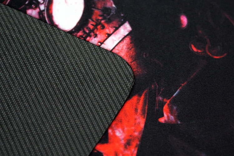 Spód podkładki Warrior wykonany został z gumy o właściwościach antypoślizgowych, dzięki czemu gwarantuje stabilność w czasie wielogodzinnych rozgrywek.