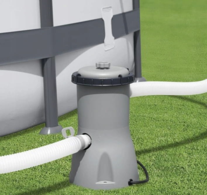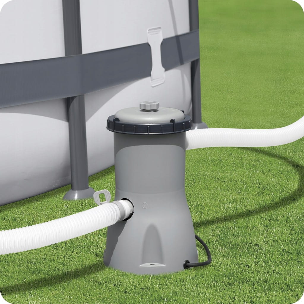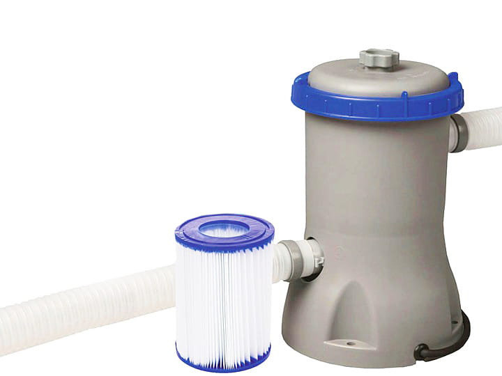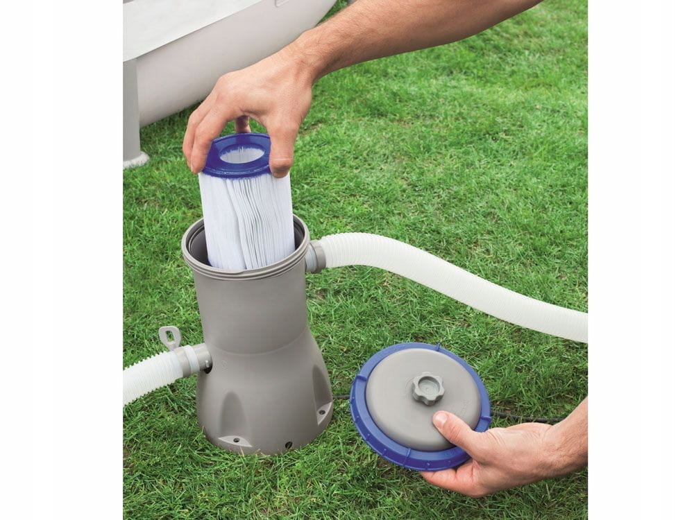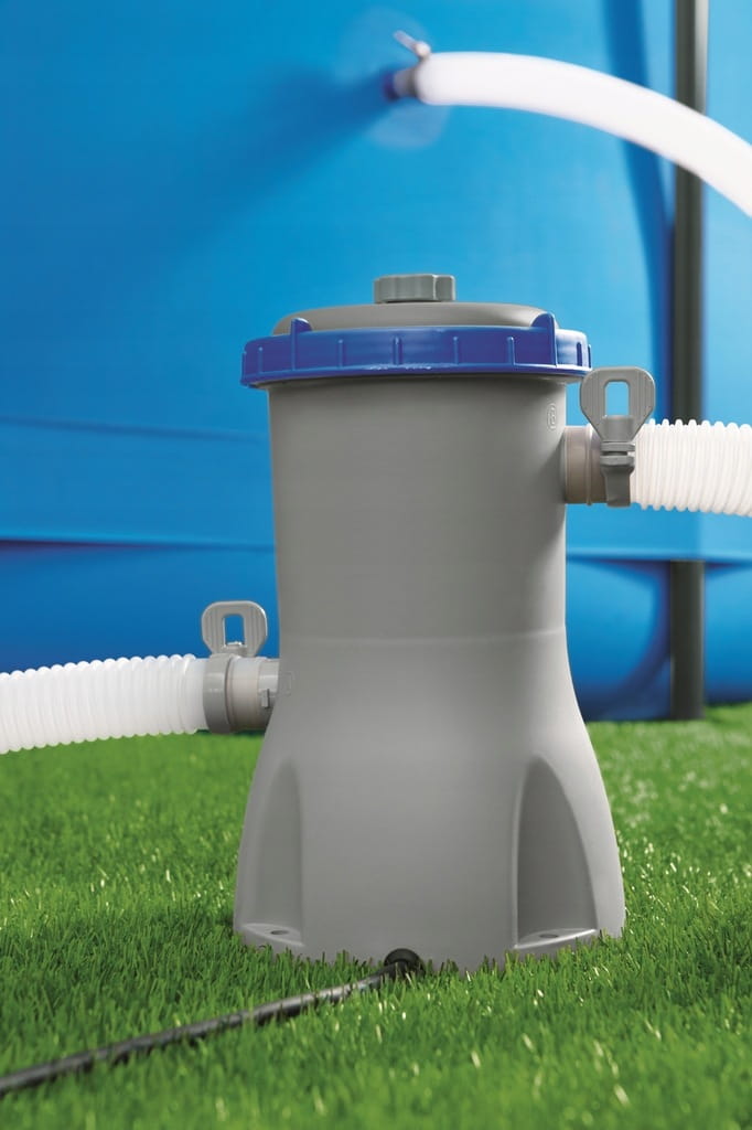 Elektryczna pompa filtrująca toń wody z wszelakich zanieczyszczeń o wydajności 3 028 l/h. W zestawie dołączone są węże oraz złączki niezbędne do podłączenia pompy. Filtry należy co 2-3 dni płukać pod bieżącą wodą, oraz wymieniać co 2 tygodnie.