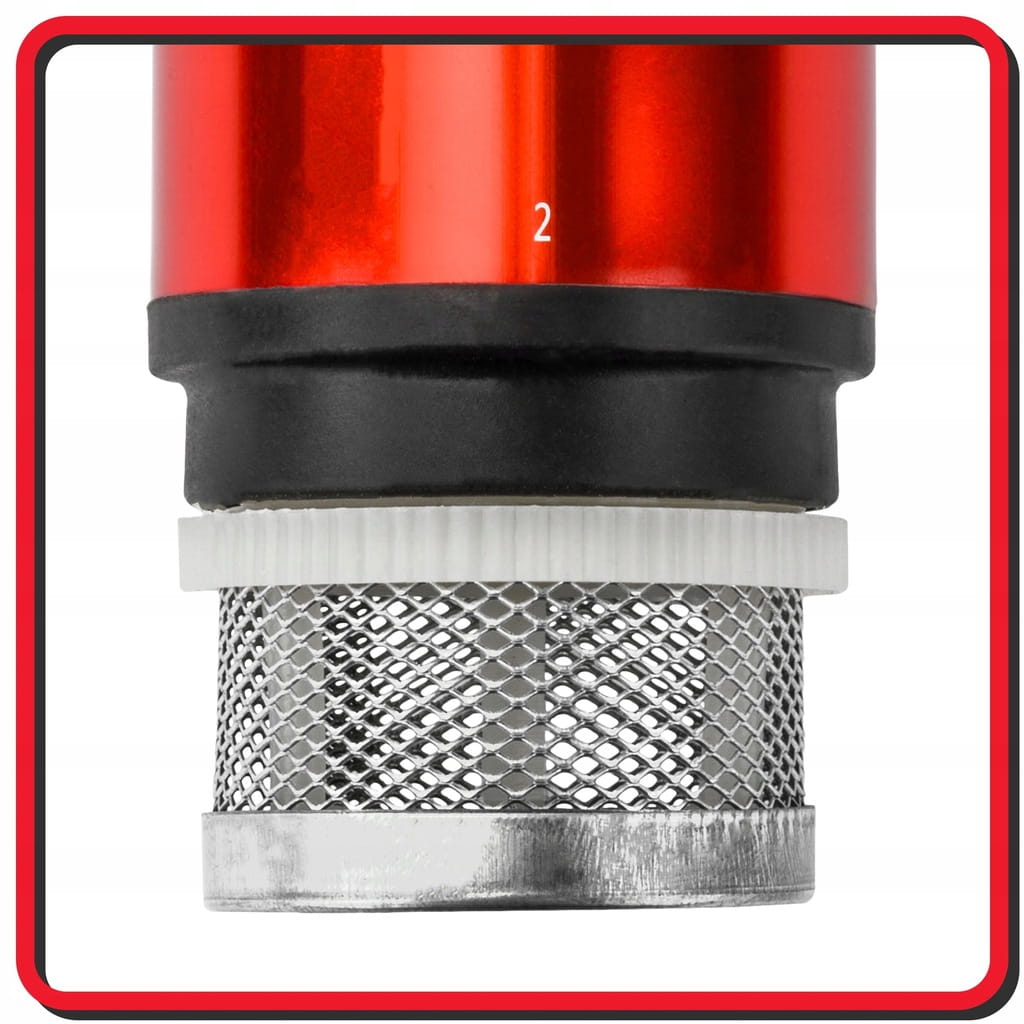 Urządzenie wyposażono w odkręcaną głowicę z filtrem, co gwarantuje, że do przepompowywanej cieczy nie przedostaną się większe zanieczyszczenia. To rozwiązanie chroni zarówno pompę, jak i użytkowane zbiorniki, zapewniając czystość i bezpieczeństwo pracy.