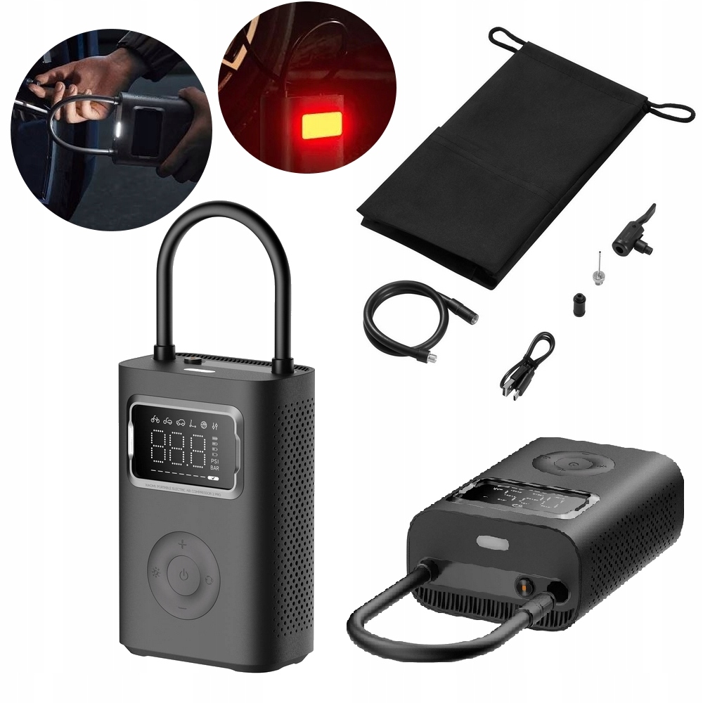 Pompka KOMPRESOR akumulatorowy do 10 BAR latarka światło SOS Xiaomi
