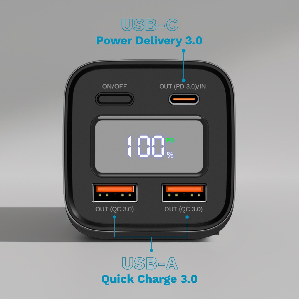 Power bank o pojemności 20 000 mAh wystarczy, aby kilkukrotnie naładować smartfon, zasilić tablet, a nawet dodać energii laptopowi. Wbudowany wyświetlacz LCD pokazuje dokładny poziom naładowania power banka, dzięki czemu zawsze wiesz, ile energii masz do dyspozycji. To idealne rozwiązanie w podróży, na uczelni czy w pracy w terenie.
