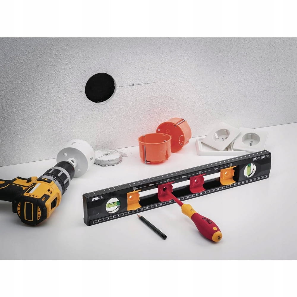 Poziomica dla ELEKTRYKÓW 40 cm dwie libelki do oznaczania PUSZEK Wiha