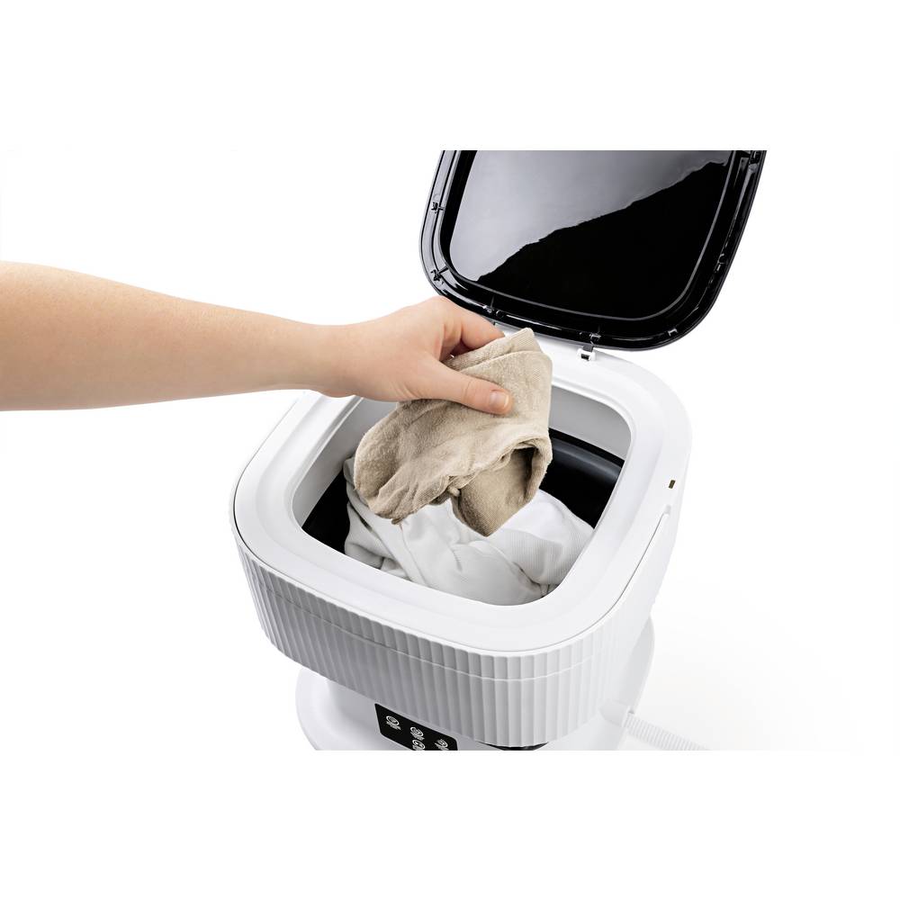 Składana mini pralka to idealne urządzenie oszczędzające miejsce. Można ją złożyć i wygodnie przechowywać, dzięki czemu idealnie nadaje się do małych mieszkań, podróży, hoteli, na działkę, wycieczek kempingowych i akademików.