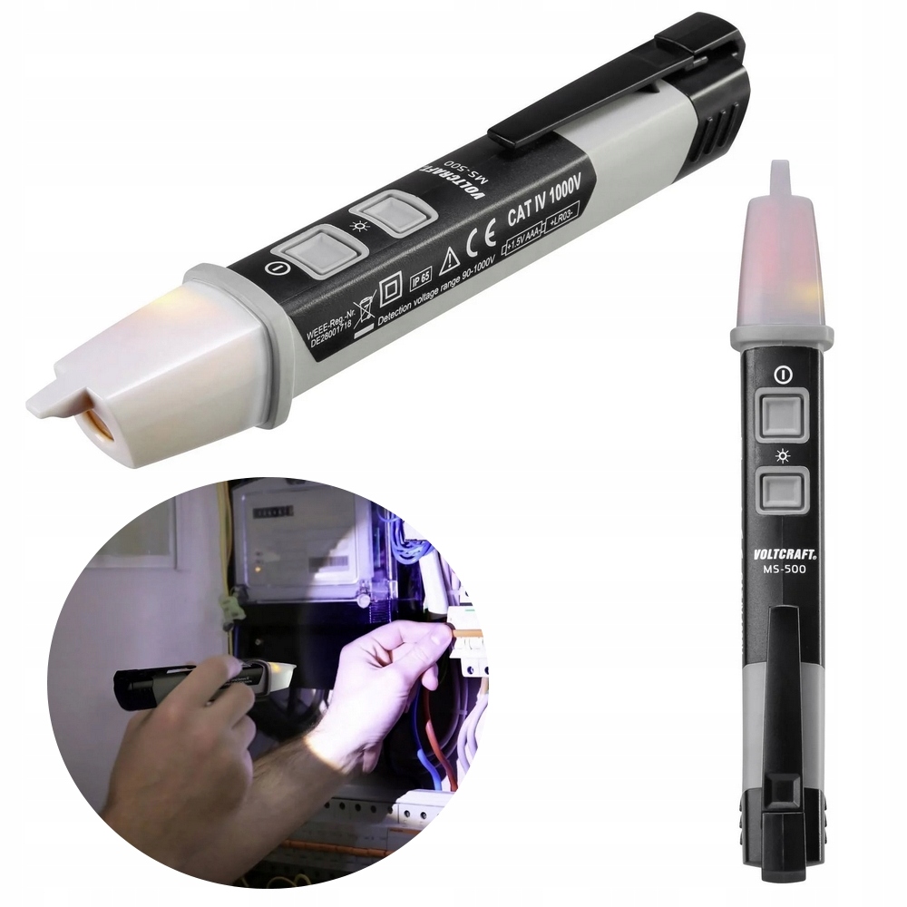 Profesjonalny bezdotykowy próbnik napięcia, umożliwiający szybkie i bezpieczne wykrywanie obecności napięcia bez konieczności kontaktu z przewodem. Idealny do pracy w instalacjach domowych i przemysłowych.