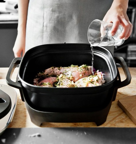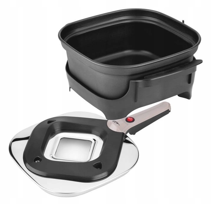 - Pokrywa ochronna do bezpiecznego przechylania oraz przechowywania gotowej żywności. Może służyć również jako taca do podawania
