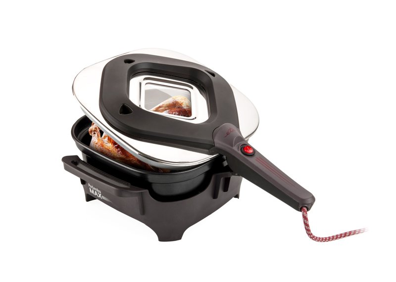 Ten elektryczny prodiż przeznaczony jest do różnych sposobów gotowania. Od klasycznego pieczenia, po gotowanie aż do duszenia i brązowienia potraw. Posiłki w nim przygotowywane nie tracą smaku, mięso nie wysycha a gotowanie jest aż do 80% bardziej wydajna niż w tradycyjnym piekarniku. Dzięki prodiżowi ETA upieczenie biszkoptu w 15 minut jest realne. Pachnące, soczyste mięso i chrupiący deser bez problemu przygotujesz poza ciężkim sprzętem w swojej kuchni. W jaki sposób? ETA ma rozwiązanie, które umożliwia w małych kuchniach mieszkalnych, domkach lub na wakacjach piec komfortowo, z niskim zużyciem energii, wszystko znajdziesz w ETA. To praktyczne urządzenie posiada nieprzywierającą powłokę oraz kwadratowy kształt. Pokrywa z wykończeniem ze stali nierdzewnej posiada otwory wentylacyjne oraz szklane okienko. Nie musisz już podnosić całej pokrywy aby zobaczyć na jakim etapie jest Twoja potrawa, wystarczy zajrzeć przez szybę. Bezpieczeństwo w użytkowaniu zapewnia specjalna blokada, która wyłącza urządzenie w chwili zdejmowania z niego pokrywy (nawet w wypadku włączonego przycisku na pokrywie). Zarówno stabilny stojak oraz uchwyty są izolowane dzięki czemu bez problemu przeniesiesz oraz postawisz gorące danie gdzie chcesz (bez przekładania potrawy do innego naczynia). Kolejnym praktycznym elementem jest długi przewód zasilający (1,5 m). Prodiż ETA, to ciągle doskonalone urządzenie z którego wielu użytkowników korzysta od ponad 50 lat.