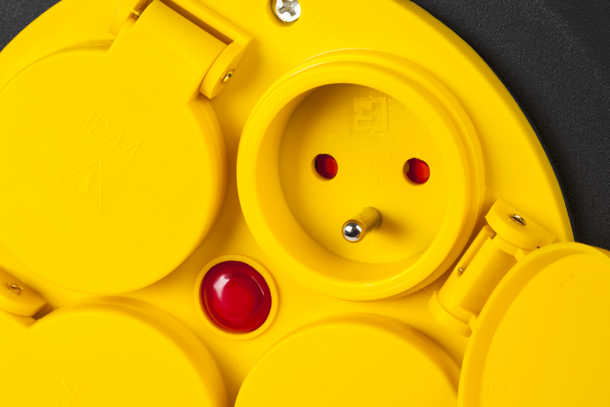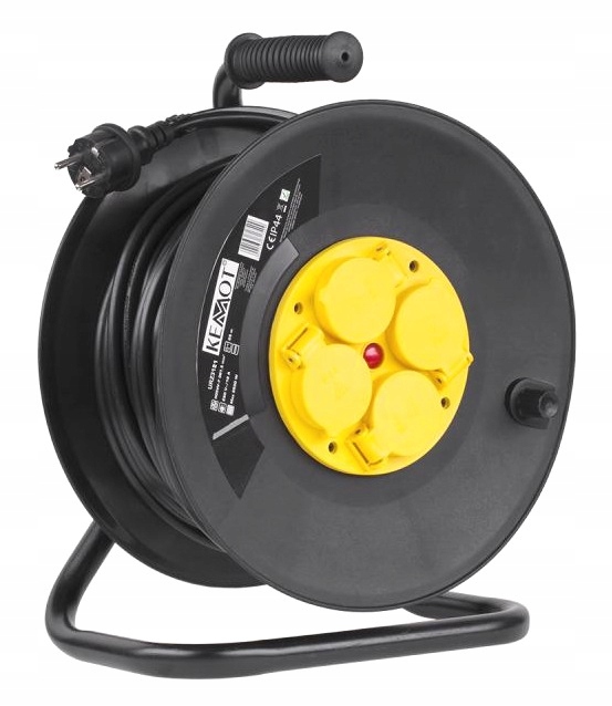 Nadaje się o użytku zewnętrznego IP 44. Gumowe pokrycie kabla. Wysoka jakość wykonania. Wygodny uchwyt do przenoszenia oraz stabilny stojak. Zaopatrzony w ręczny zwijacz przewodu