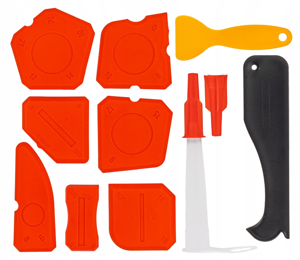 Każda z nich ma inny kształt, promień i kąt, co pozwala idealnie dopasować narzędzie do narożników, szczelin i krawędzi, zapewniając czyste, estetyczne i trwałe wykończenia bez smug i poprawek.