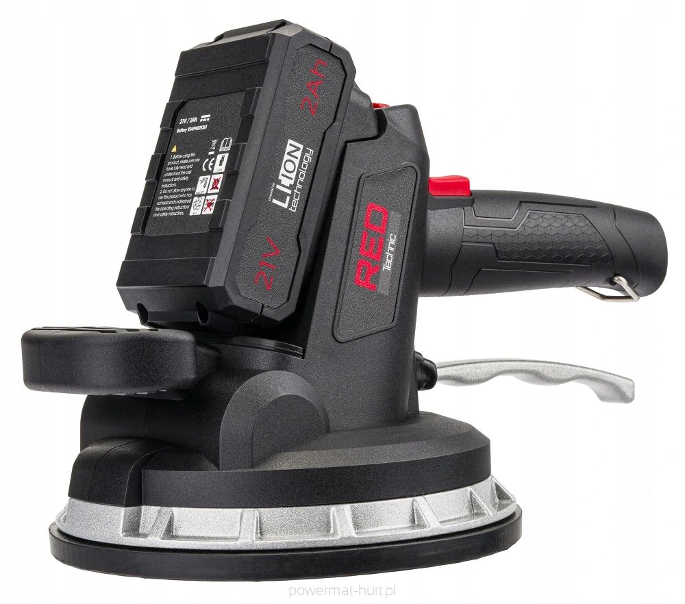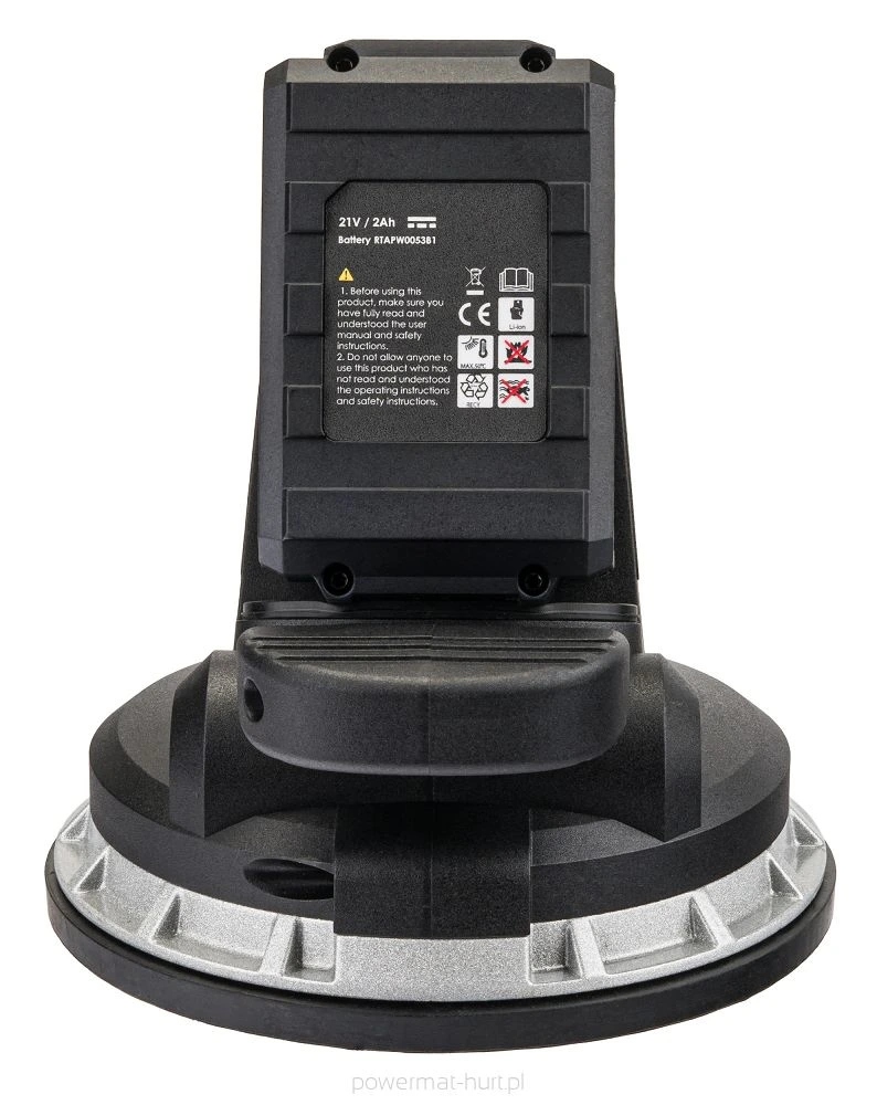 Przyssawka zasilana baterią litową 21V może być stosowana do instalacji wewnątrz i na zewnątrz. Zastępuje tradycyjną obsługę ręczną i pomaga uniknąć problemów z powodu nieprawidłowego rozprowadzenia kleju pod płytkami i dużymi płytami. Szczególny kształt i podwójny uchwyt pozwalają utrzymać równowagę ładunku w fazie podnoszenia i układania płytki oraz lepiej prowadzić urządzenie.
