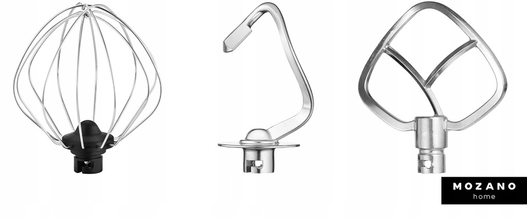 - Hak - sprawdza się przy wyrabianiu ciasta na pierogi, makaron, pizzę lub chleb. Pokryty jest powłoką zapobiegającą przywieraniu.