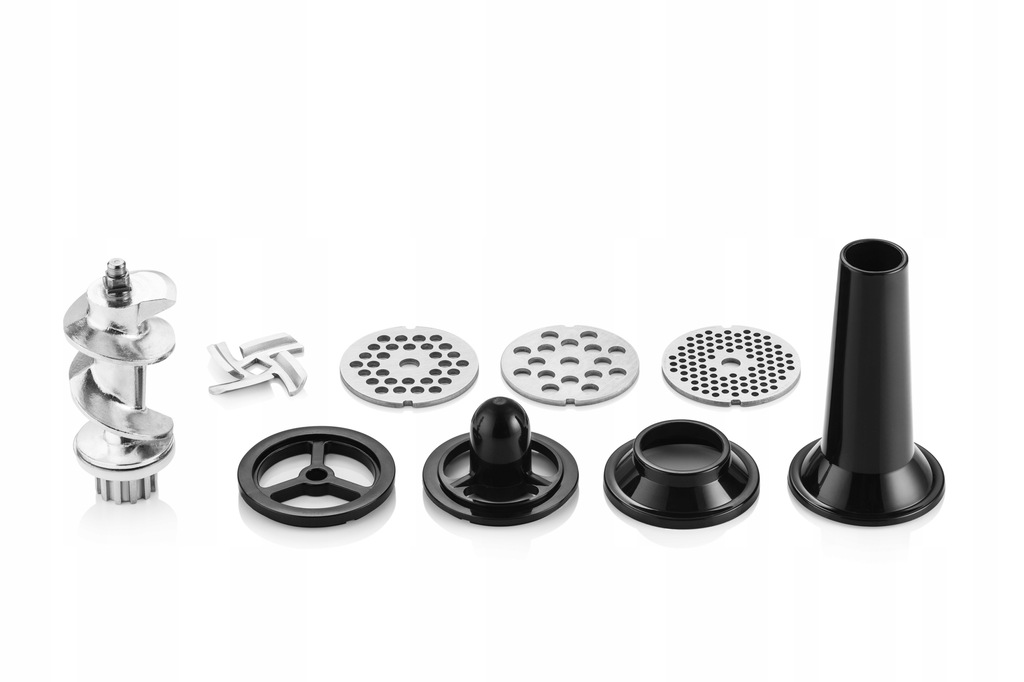 - Akcesoria do mielenia mięsa. W tym 3 sitka oraz końcówka do robienia kiełbasy