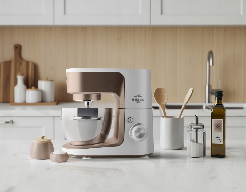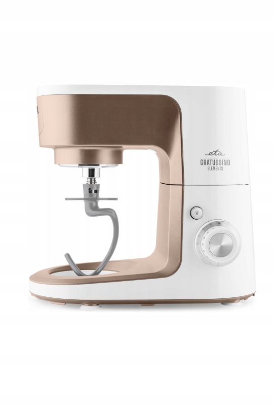Robot kuchenny ETA Gratussino III Elements łączy elegancki design z wysoką wydajnością. Dzięki silnikowi o mocy 1200 W z metalowymi kołami zębatymi, planetarnemu systemowi mieszania i bogatym akcesoriom sprosta zarówno delikatnym kremom, jak i ciężkiemu ciastu czy mięsu. Dostępny jest w trzech wyjątkowych kolorach – terra (ziemia), sole (słońce) i luna (księżyc).