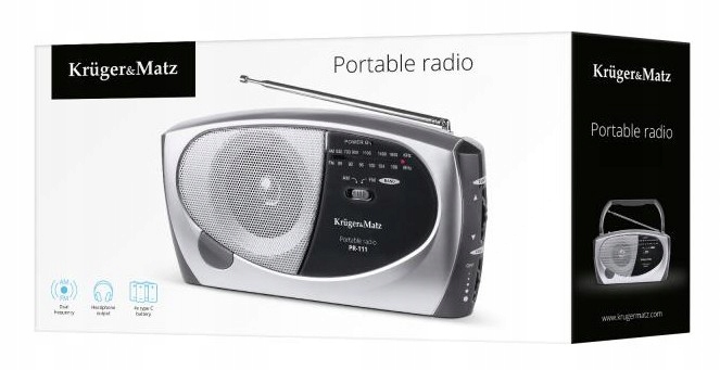 Radio Kruger&Matz to niewielkie przenośne radio, które doskonale sprawdzi się wszędzie. Dzięki możliwości zasilania go zarówno prądem zmiennym, jak i bateriami, urządzenie będzie nie tylko idealne do domu, ale bez problemu pozwoli zrelaksować się przy ulubionej audycji radiowej w plenerze. Radio posiada antenę teleskopową, dzięki której bardzo dobrze odbiera fale radiowe. Dodatkowymi atutami urządzenia są składany uchwyt, umożliwiający łatwe przenoszenie urządzenia oraz wyjście słuchawkowe dla osób, które chcą słuchać muzyki, jednocześnie nie zakłócając ciszy innym.