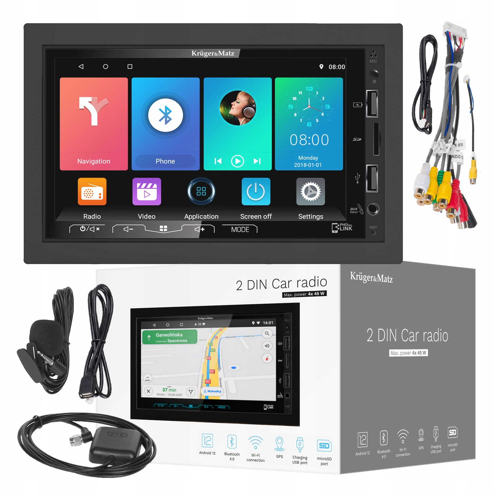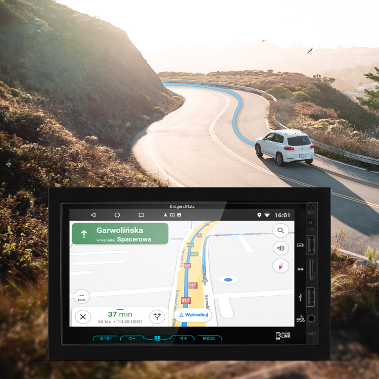 Radio samochodowe Kruger&Matz wyposażone zostało w moduł Wi-Fi, dzięki któremu z łatwością podłączysz go do Internetu. Co więcej moduł GPS sprawia, że możesz na urządzeniu swobodnie korzystać z Google Maps i to w czasie słuchania radia. Teraz nie musisz rezygnować z ulubionej muzyki, gdy będziesz potrzebować wskazówek w czasie drogi.