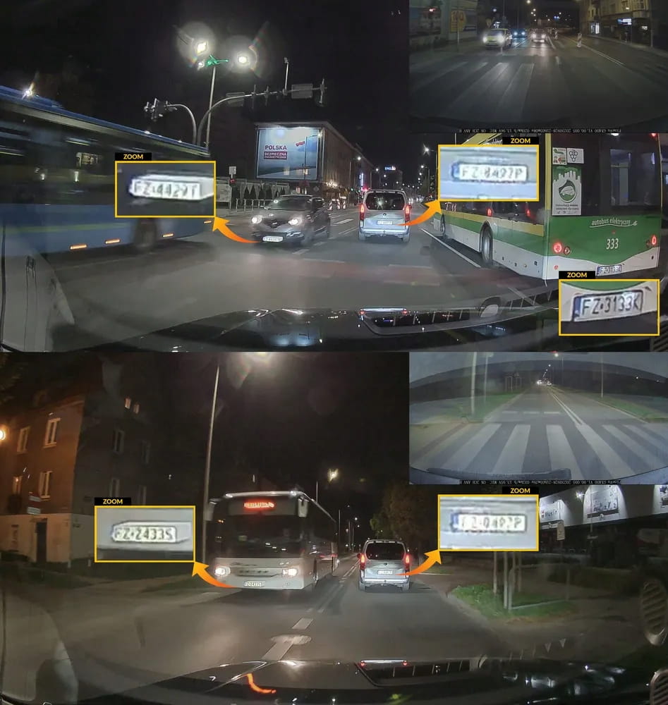 Kamera samochodowa FineVu GX400 rejestruje obraz w rozdzielczości 2560x1440p zarówno z modułu przedniego, jak i tylnego, dzięki wysokiej klasy przetwornikom Sony STARVIS IMX335. Oprogramowanie kamery oferuje znakomicie działający tryb HDR, który poprawia czytelność w najtrudniejszcy warunkach oświetleniowych. Czasami jesteśmy w stanie uzyskać nawet czytelne tablice rejestracyjne nadjeżdżających pojazdów w nocy!