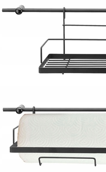 Praktyczny i ekskluzywny zestaw oszczędzający miejsce w kuchni. Stylowy, wykonany ze stali malowanej proszkowo na kolor czarny mat. Łatwy w montażu. Zestaw montażowy w komplecie.