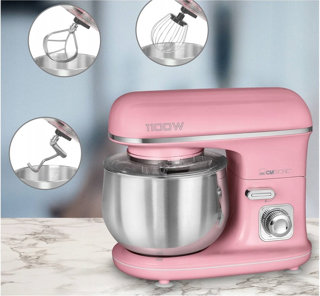 Nie musisz się obawiać, że robot ulegnie przy tym uszkodzeniu, ponieważ jego obroty są elektroniczne dostosowywane do obciążenia. Bez problemu przygotujesz również ciasto na biszkopt i ubijesz pianę dzięki solidnej trzepaczce stalowej.