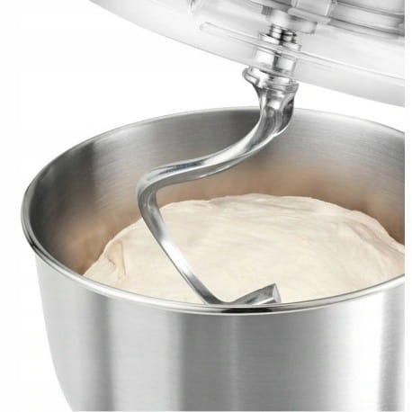 W połączeniu z wysokiej klasy mieszadłem hakowym z odlewu aluminiowego jest w stanie wyrobić nawet dużą ilość ciasta (maksymalnie 3 kg) i to w dodatku bardzo gęstego.