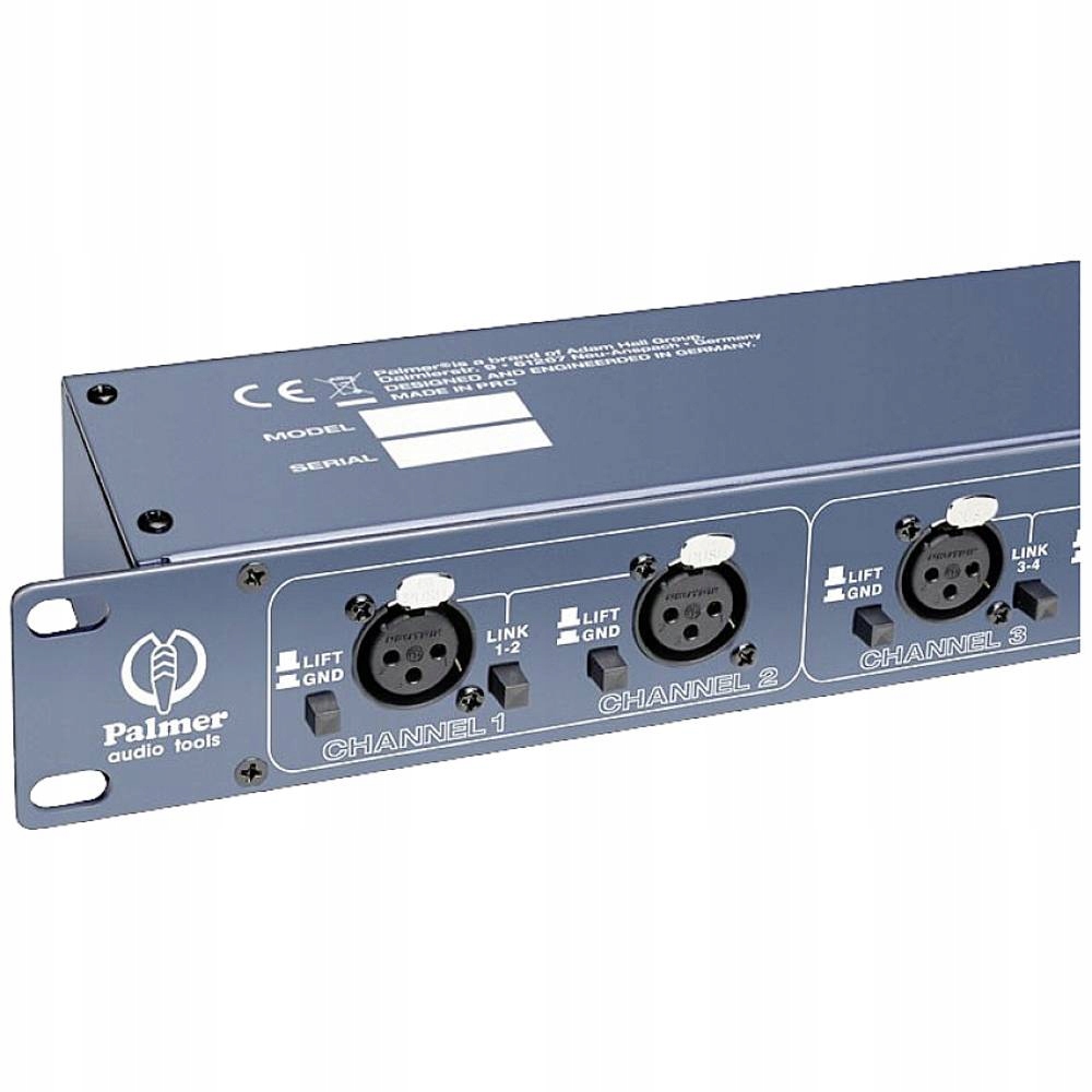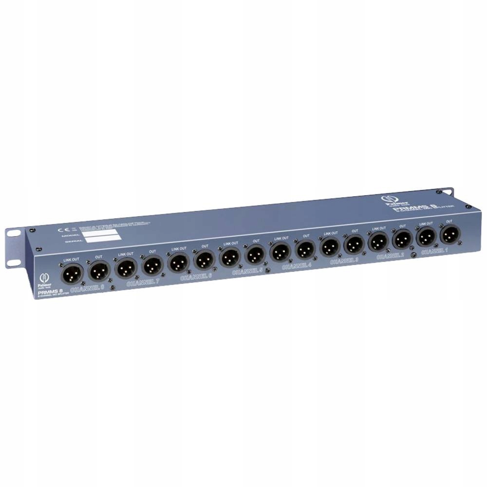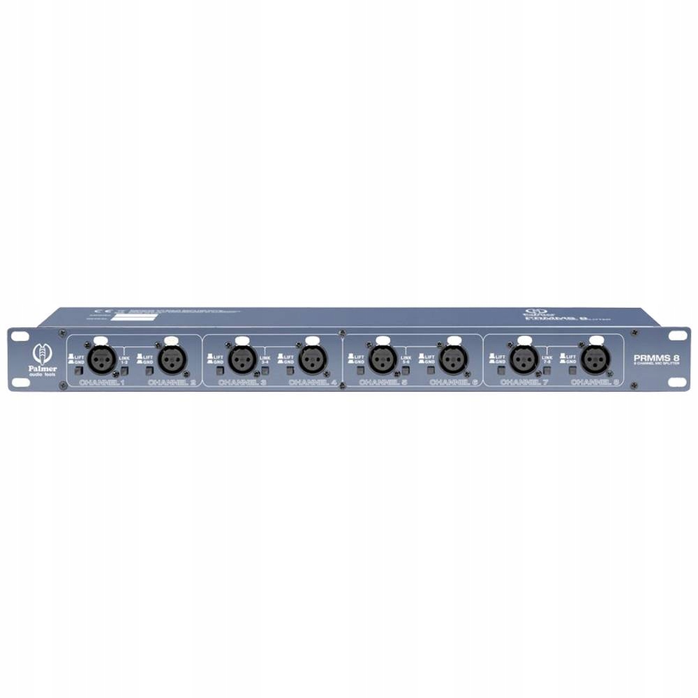 Palmer to 19-calowy rozdzielacz mikrofonowy z 8 zbalansowanymi wejściami XLR, z których każde wejście jest kierowane do wyjścia bezpośredniego i wyjścia izolowanego transformatorowo. Aby zapewnić elastyczne użytkowanie, cztery przełączniki LINK z przodu umożliwiają połączenie dwóch kanałów. Dzięki temu sygnał wejściowy może być kierowany przez cztery wyjścia do konsol mikserskich dla FOH, monitorowania, nagrywania i transmisji radiowej lub istnieje możliwość połączenia dwóch sygnałów wejściowych w jeden sygnał wyjściowy. Mikrofony pojemnościowe mogą być zasilane phantom przez wyjścia bezpośrednie. Każdy kanał jest wyposażony w uziemienie chroniące przed pętlami uziemienia i zakłóceniami, które mogą powstać w wyniku podwójnego uziemienia podłączonych zasilaczy.