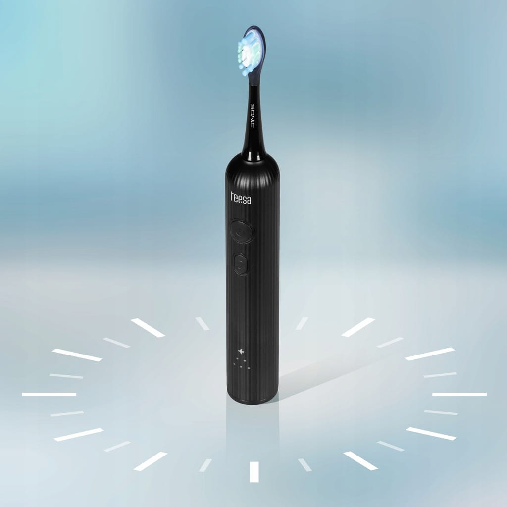 Szczoteczka soniczna do zębów Teesa Sonic Elite to przełom w codziennej higienie jamy ustnej. W porównaniu do tradycyjnych szczoteczek oferuje bardziej skuteczne czyszczenie, usuwa więcej płytki nazębnej i dociera do trudno dostępnych miejsc. Teesa Sonic Elite to profesjonalna szczoteczka soniczna, która zapewni zdrowe i białe zęby w najwygodniejszy sposób.