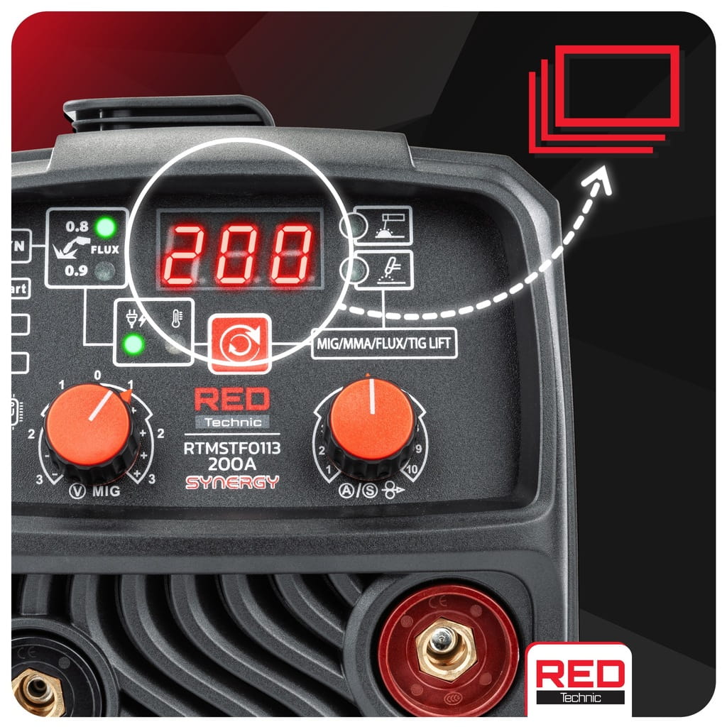 Spawarka inwertorowa RED Technic to wszechstronne urządzenie, które umożliwia efektywne spawanie różnych materiałów o szerokim zakresie grubości. Dzięki zastosowaniu tranzystorów IGBT charakteryzuje się mniejszym zużyciem energii, odpornością na zakłócenia i stabilnym prądem spawania. Intuicyjny panel sterowania oraz funkcja spawania synergicznego zwiększają ergonomię i wydajność pracy. Urządzenie jest wyposażone w wyświetlacz LCD, system chłodzenia i czujnik termiczny, co zapewnia bezpieczną i niezawodną eksploatację.