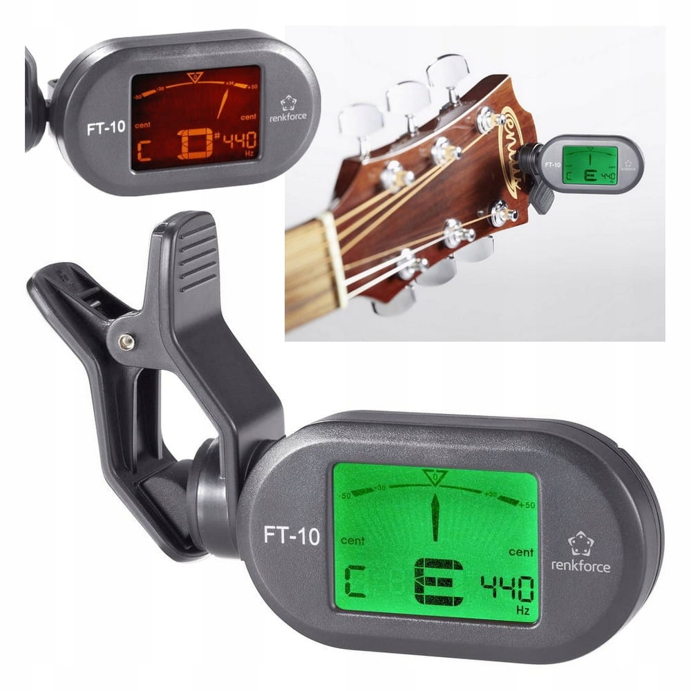 Tuner Clip On do strojenia gitar, basów, skrzypiec lub ukulele. Wystarczy podłączyć do gitary.