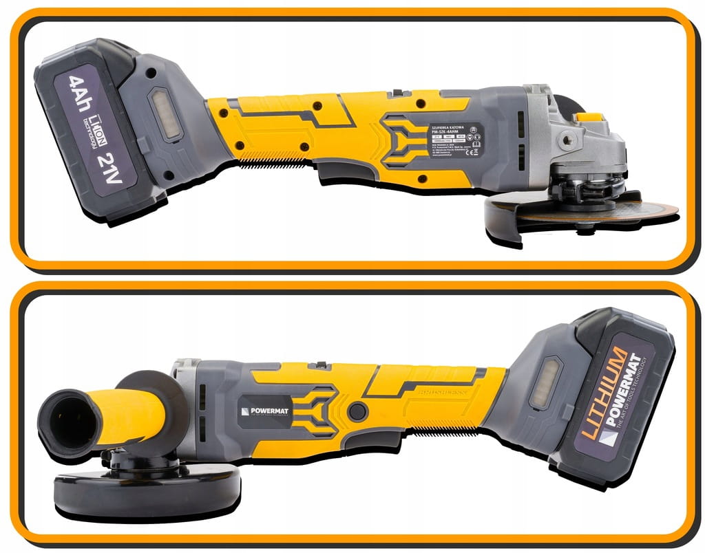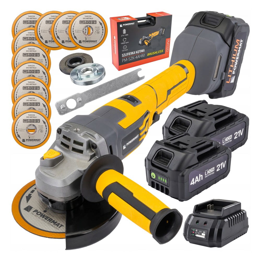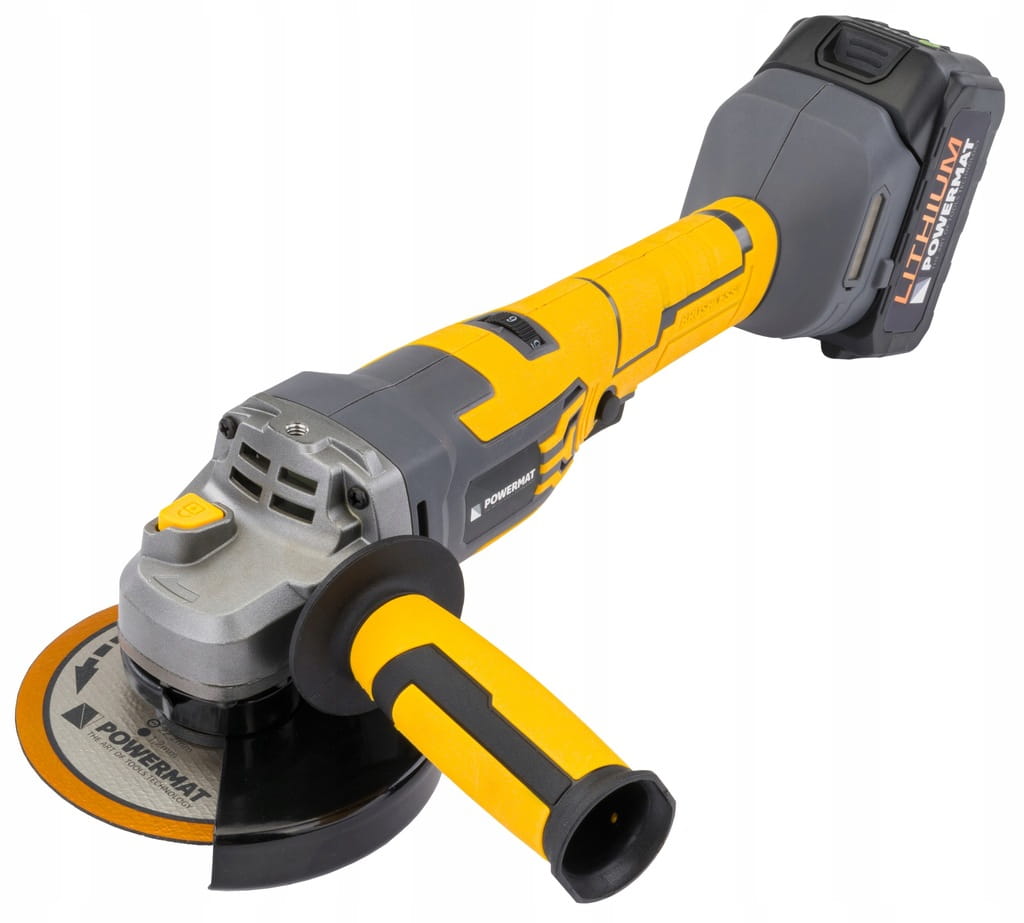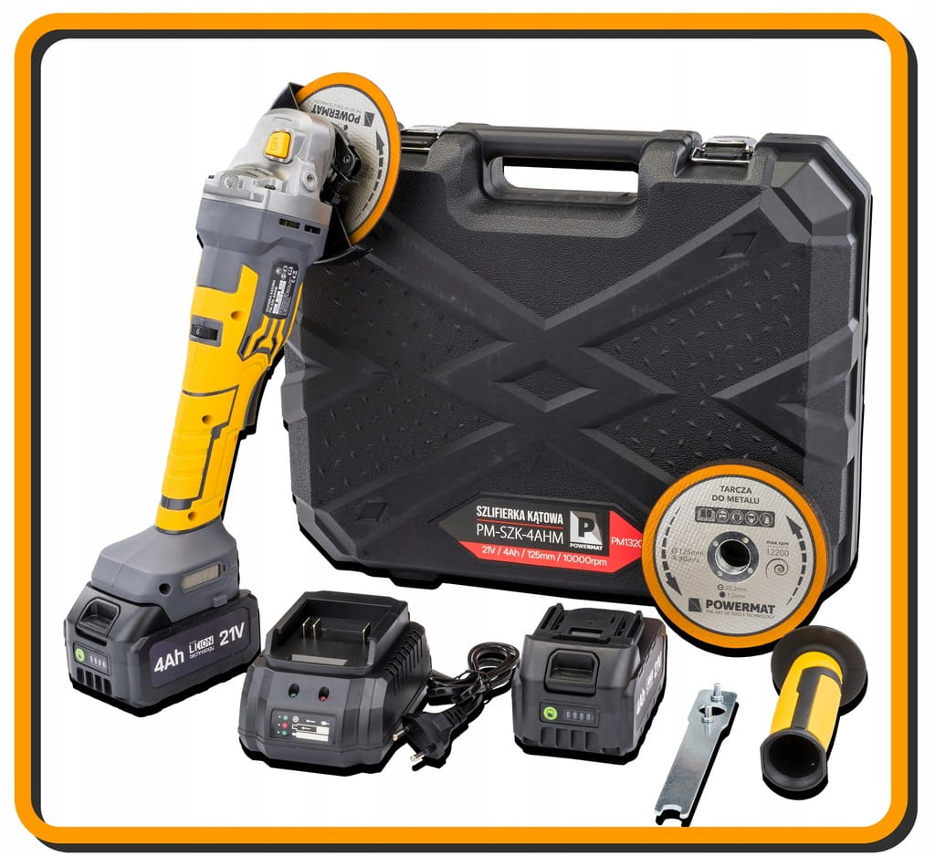 Szlifierka kątowa akumulatorowa Powermat to przenośne i wydajne narzędzie do cięcia, szlifowania i polerowania różnych materiałów. Dzięki zasilaniu akumulatorowemu zapewnia swobodę pracy bez kabla. Jest wyposażona jest w funkcje zwiększające bezpieczeństwo. W zestawie znajduję się walizka transportowa, tarcze oraz dwa akumulatory.