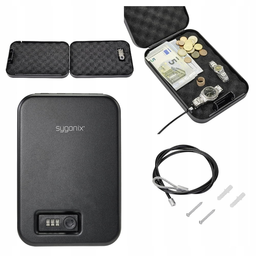 Sejf PRZENOŚNY podróżny ZAMEK kombinacyjny WYŚCIÓŁKA PIANKOWA Sygonix