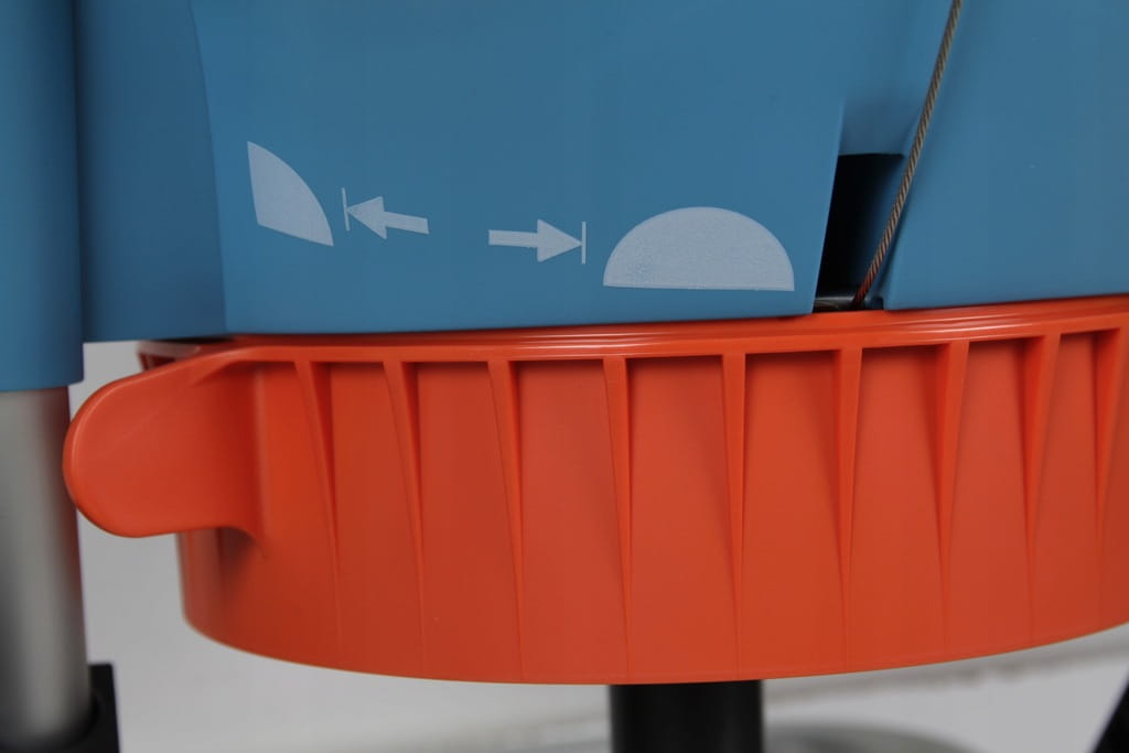 Dodatkowo regulowana pokrywa na tarczy obrotowej umożliwia precyzyjne dozowanie rozsypywanego materiału, a ponadto zapobiega rozsypywaniu materiału na użytkownika.