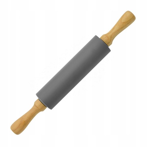 Rewelacyjny wałek silikonowy do wałkowania ciasta. Nieprzywierająca powłoka silikonowa zapobiega przyklejaniu się ciasta podczas wałkowania. Wałek do ciasta zaopatrzony w drewniane i ergonomiczne uchwyty. Walec pokryty silikonem obraca się w okół własnej osi dzięki czemu wałek nie męczy dłoni podczas użytkowania.